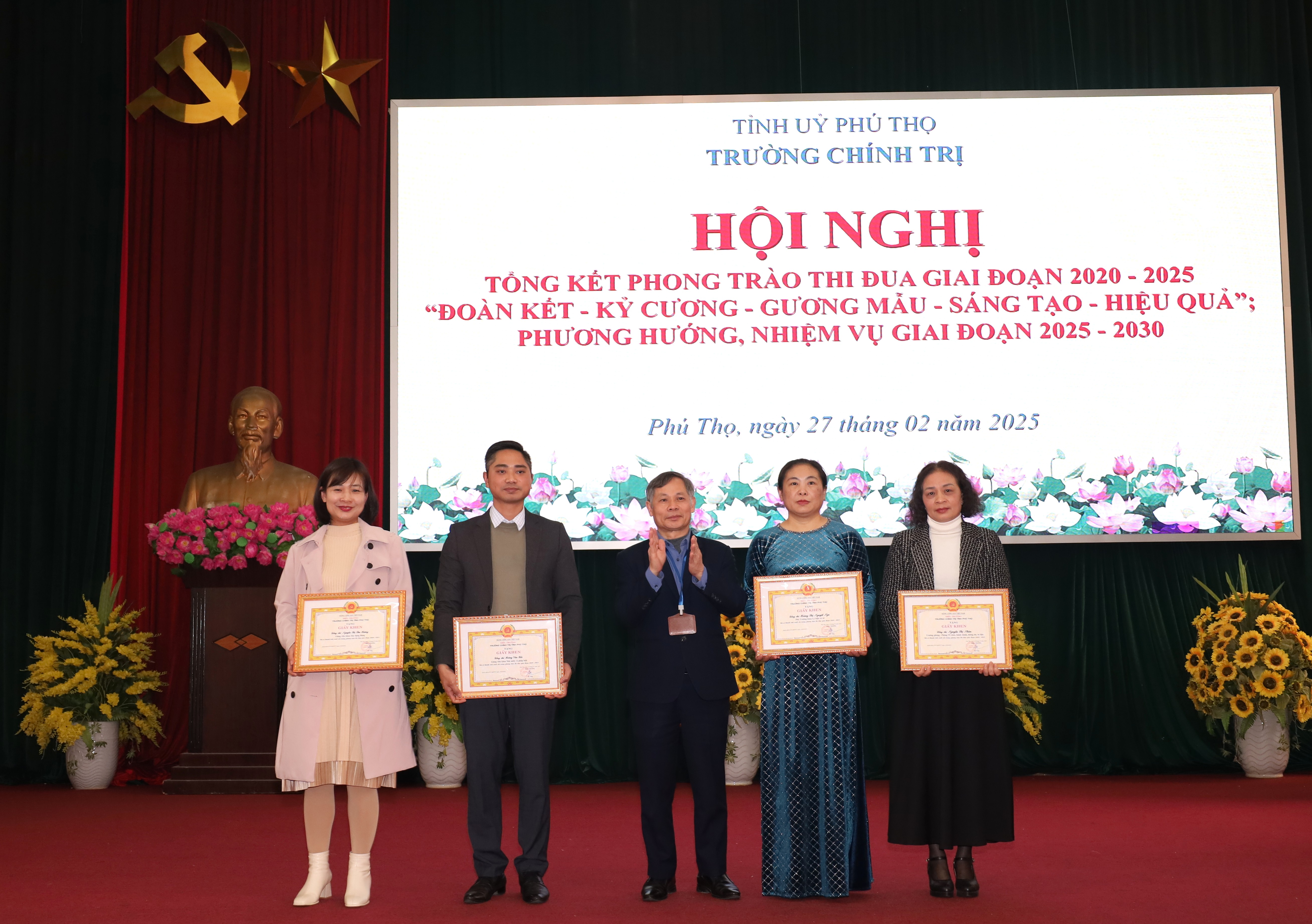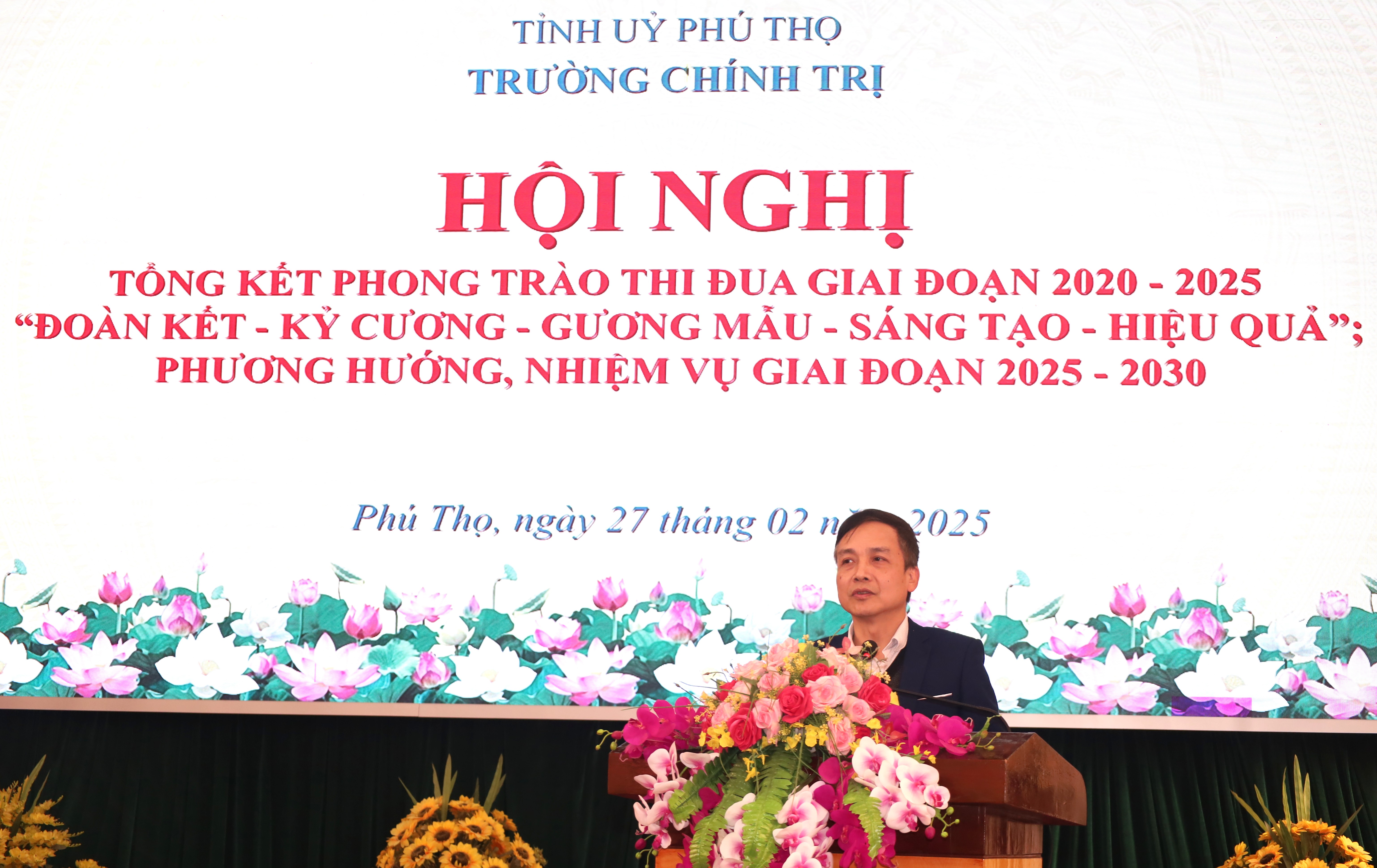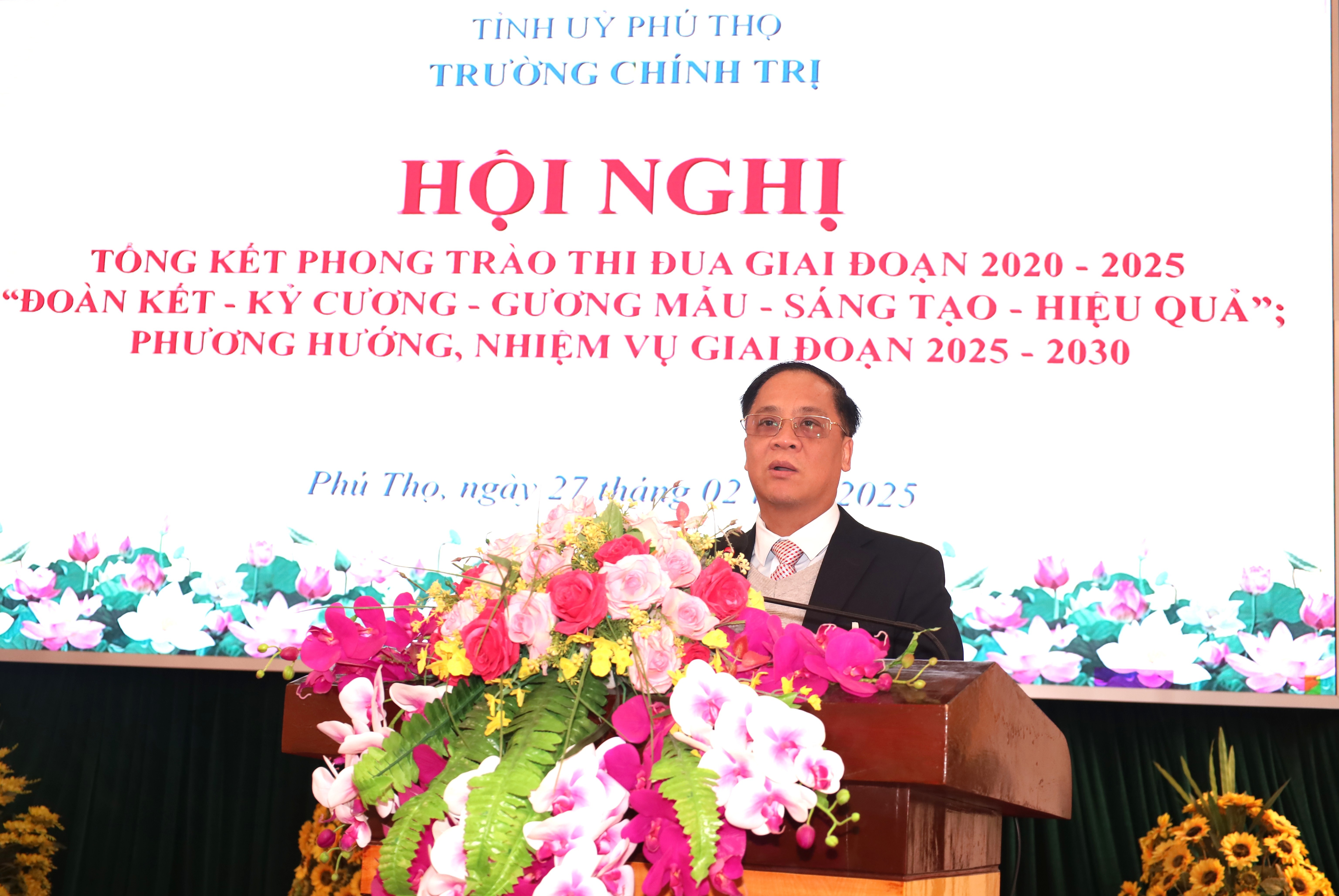 Chiều ngày 27/02/2025, Trường Chính trị tỉnh Phú Thọ tổ chức Hội nghị tổng kết phong trào thi đua giai đoạn 2020 - 2025 “Đoàn kết - Kỷ cương - Gương mẫu - Sáng tạo - Hiệu quả”; phương hướng, nhiệm vụ giai đoạn 2025 - 2030.