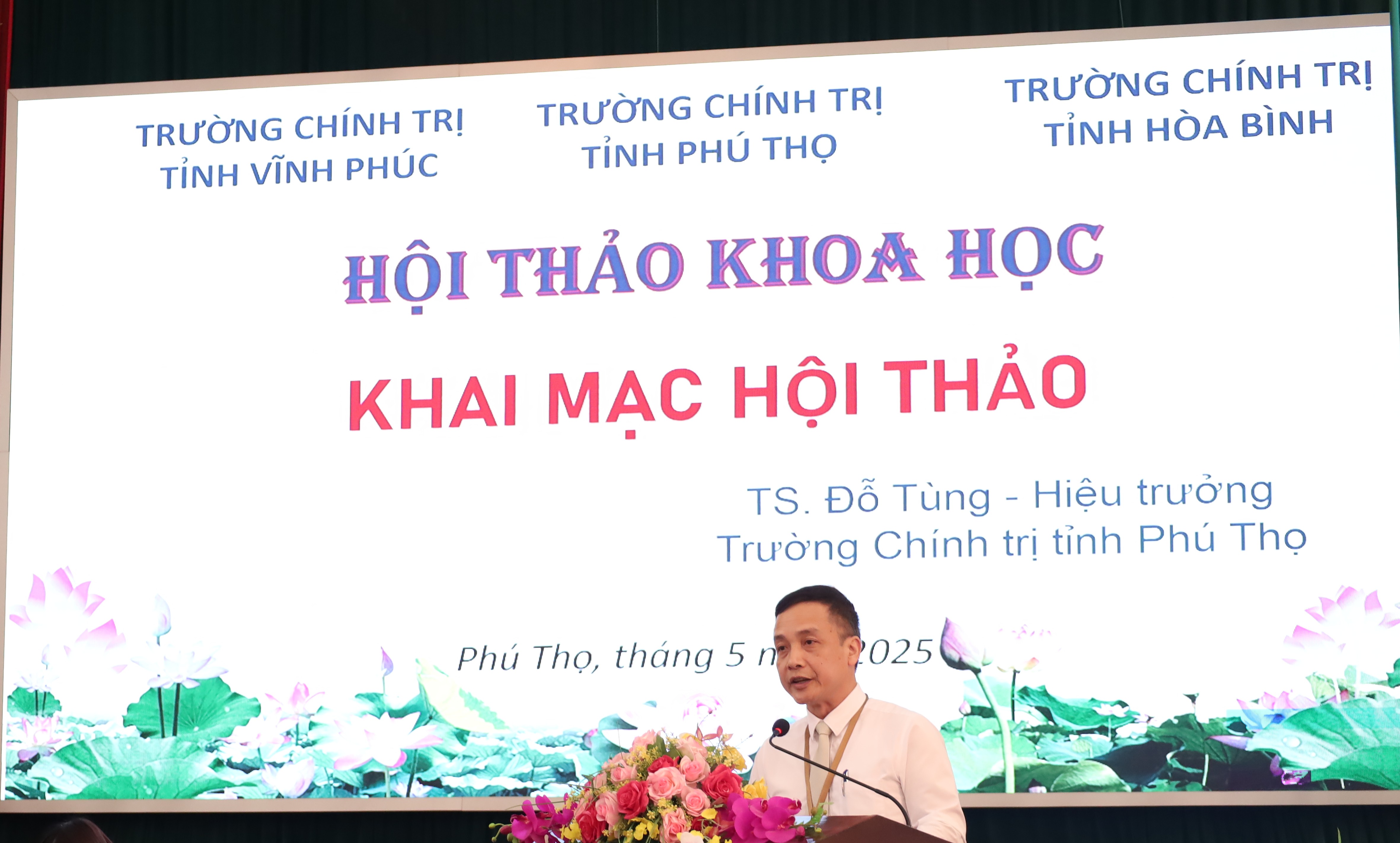 Phát biểu khai mạc Hội thảo, TS. Đỗ Tùng - Bí thư Đảng ủy, Hiệu trưởng Trường Chính trị tỉnh Phú Thọ - khẳng định: Việc tổ chức Hội thảo không chỉ góp phần làm sáng rõ ý nghĩa lịch sử, giá trị lý luận và thực tiễn sâu sắc từ lớp huấn luyện cán bộ đầu tiên do Chủ tịch Hồ Chí Minh tổ chức tại Quảng Châu năm 1925, mà còn mở ra diễn đàn khoa học thiết thực để các Trường chính trị tỉnh 3 trường chia sẻ kinh nghiệm, đề xuất giải pháp nâng cao chất lượng đào tạo, bồi dưỡng đáp ứng yêu cầu xây dựng đội ngũ cán bộ “vừa hồng, vừa chuyên” trong thời kỳ đẩy mạnh công nghiệp hóa, hiện đại hóa và chuyển đổi số.