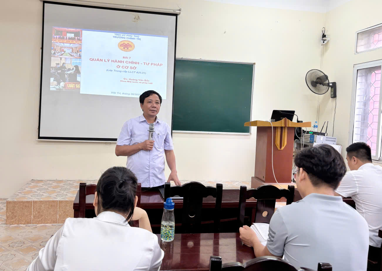 Đồng chí Hoàng Văn Bắc – Giảng viên Khoa Nhà nước và pháp luật thực hiện giờ giảng