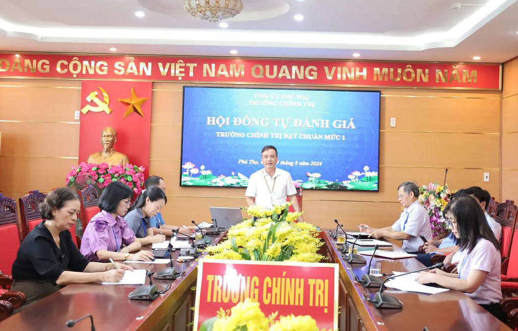 Ngày 07/8/2024, Hội đồng Tự đánh giá Trường Chính trị tỉnh Phú Thọ đạt chuẩn mức 1 đã tiến hành tự đánh giá kết quả thực hiện Quyết định số 1033-QĐ/TU, ngày 18/5/2023 của Ban Thường vụ Tỉnh ủy về việc phê duyệt Đề án “Xây dựng Trường Chính trị tỉnh Phú Thọ đạt chuẩn mức 1 vào năm 2025”; dưới sự chủ trì của đồng chí Đỗ Tùng - Bí thư Đảng uỷ, Hiệu trưởng, Chủ tịch Hội đồng; tham dự Hội nghị có các Phó Chủ tịch Hội đồng (các đồng chí Phó Hiệu trưởng), Uỷ viên hội đồng (các đồng chí Trưởng các khoa, phòng) và đại diện Tổ giúp việc của Hội đồng.