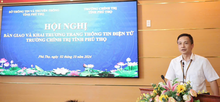 Ngày 02/10/2024, Trường Chính trị tỉnh phối hợp với Sở Thông tin truyền thông tổ chức Hội nghị bàn giao và khai trương Trang Thông tin điện tử Trường Chính trị tỉnh Phú Thọ. Tham dự Hội nghị có TS. Đỗ Tùng - Bí thư Đảng ủy, Hiệu trưởng; các đồng chí trong Ban Giám hiệu; đồng chí Nguyễn Tiến Trung - Phó Giám đốc sở Thông tin, truyền thông tỉnh Phú Thọ; Lãnh đạo Trung tâm Công nghệ thông tin và Truyền thông (Sở Thông tin và Truyền thông); Trưởng các khoa phòng, Ban Biên tập Trang thông tin điện tử, Tổ chuyển đổi số của Nhà trường.
