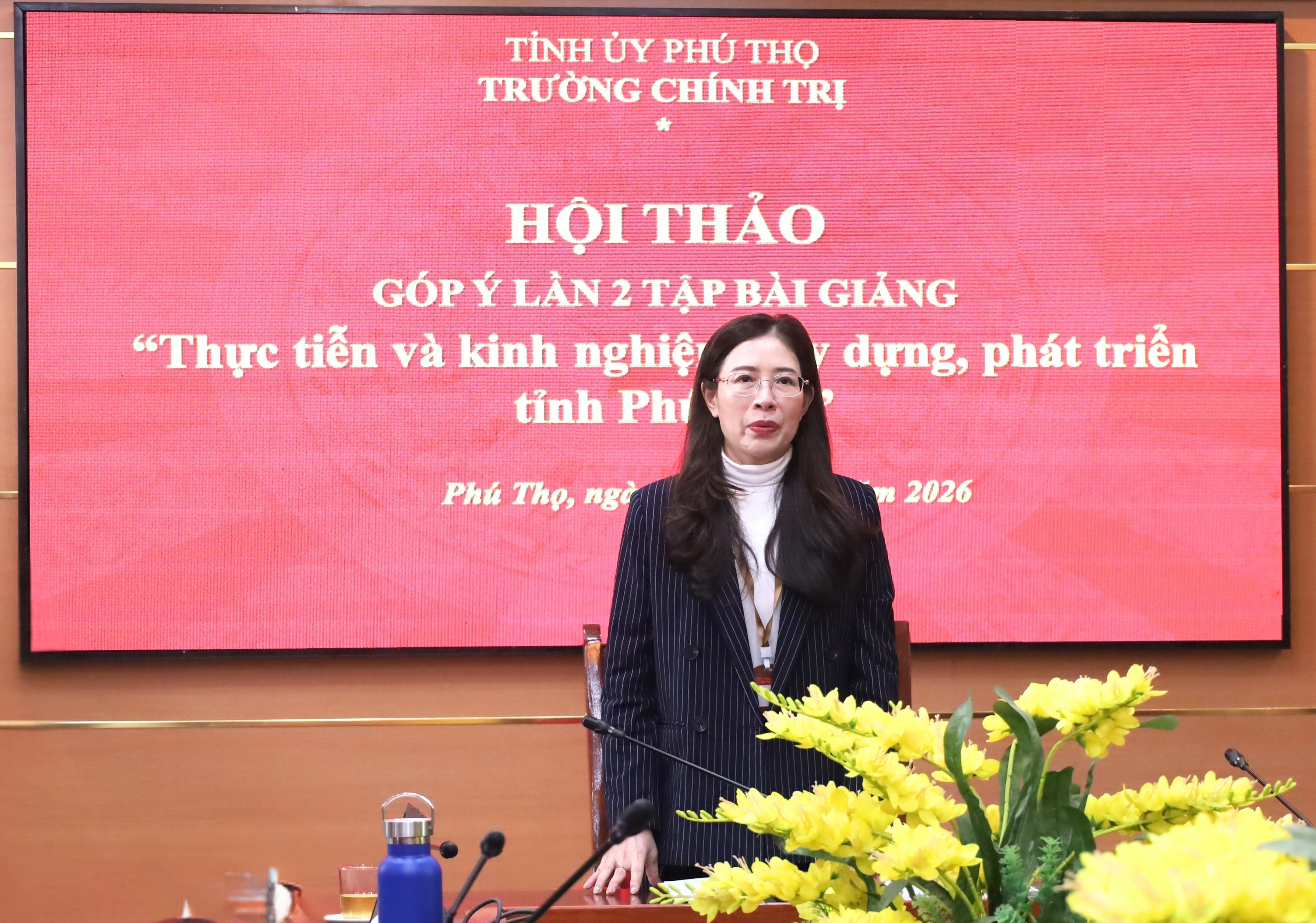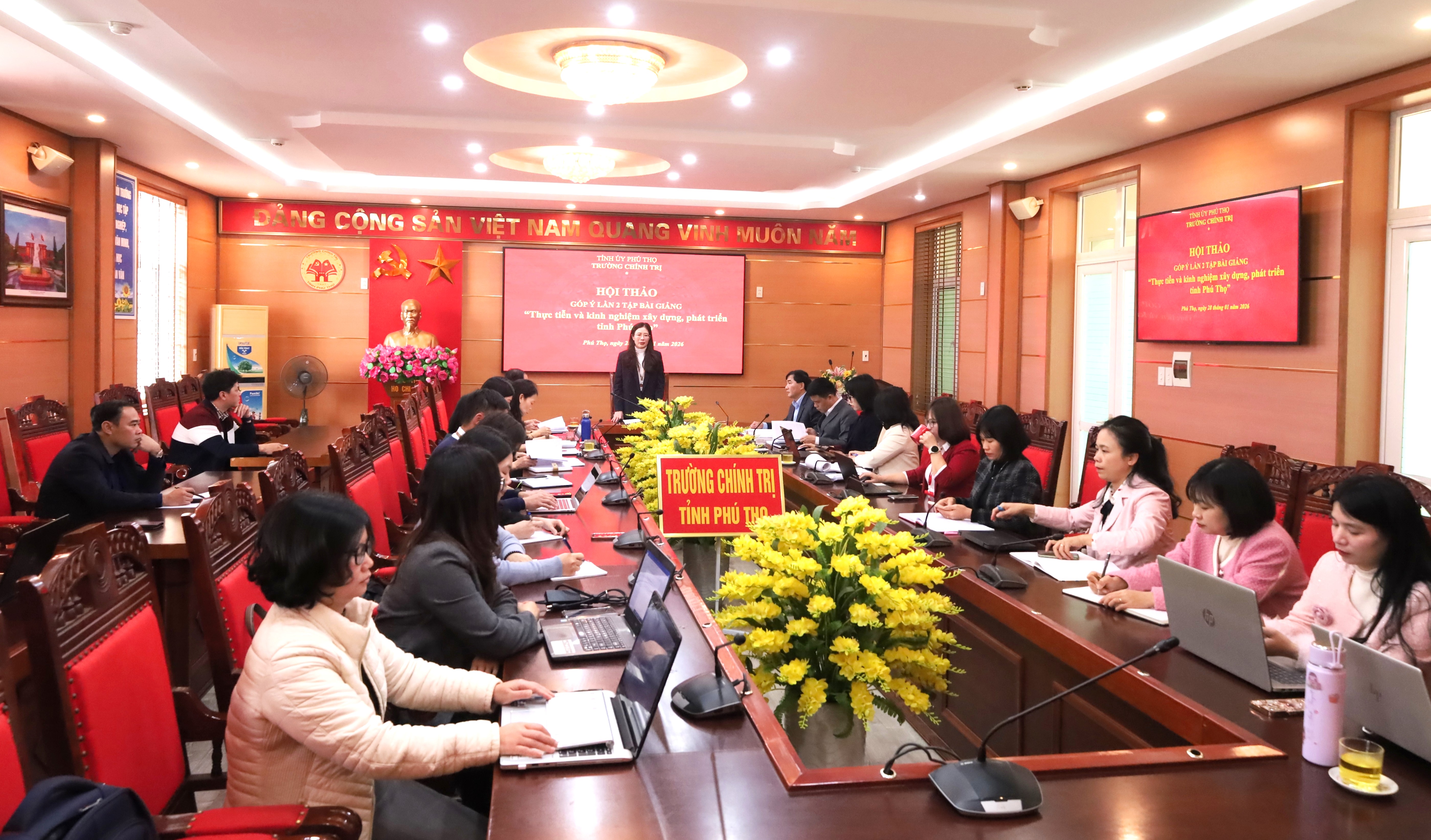 Chiều 28/01/2026, Hội đồng Khoa học Trường Chính trị tỉnh tổ chức Hội thảo góp ý lần 2 Tập bài giảng “Thực tiễn và kinh nghiệm xây dựng, phát triển tỉnh Phú Thọ”. Hội nghị do đồng chí TS. Bùi Thị Kim Tuyến - UVBCH Đảng bộ tỉnh, UVBCH Đảng bộ các cơ quan Đảng tỉnh, Bí thư Đảng ủy, Hiệu trưởng, Chủ tịch Hội đồng Khoa học Trường chủ trì. Tham dự có các đồng chí trong Ban Giám hiệu, Hội đồng Khoa học Trường, lãnh đạo các khoa, phòng và các nhóm biên soạn.